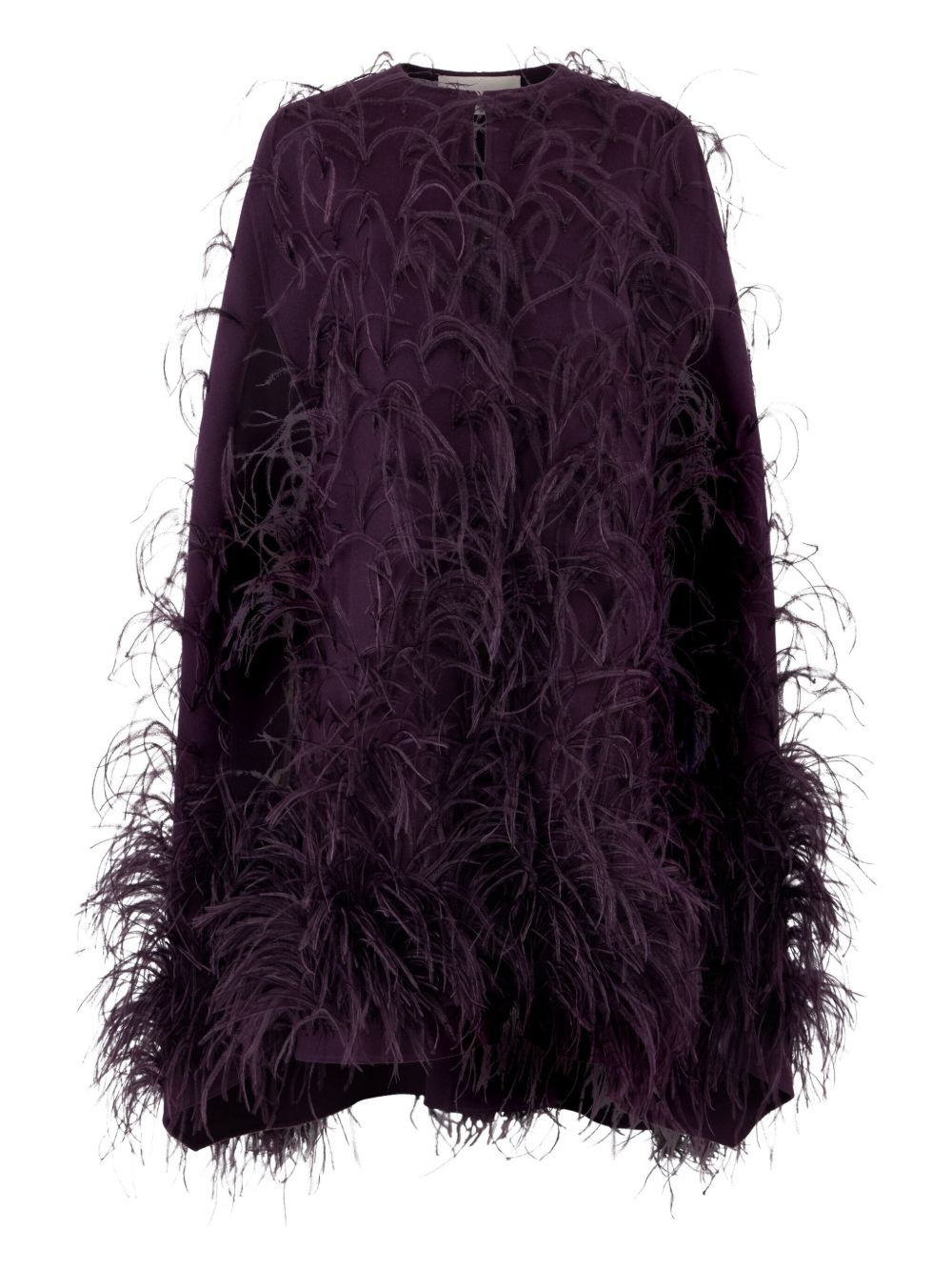feather-detailing cape Highlights - Dark purple - Feather detailing - Round neck - Rear hook fastening Made in Italy Composition Viscose 100%, Polyester 100%, Virgin Wool 90%, Cashmere 10% Washing instructions Read Manufacturer Guidelines