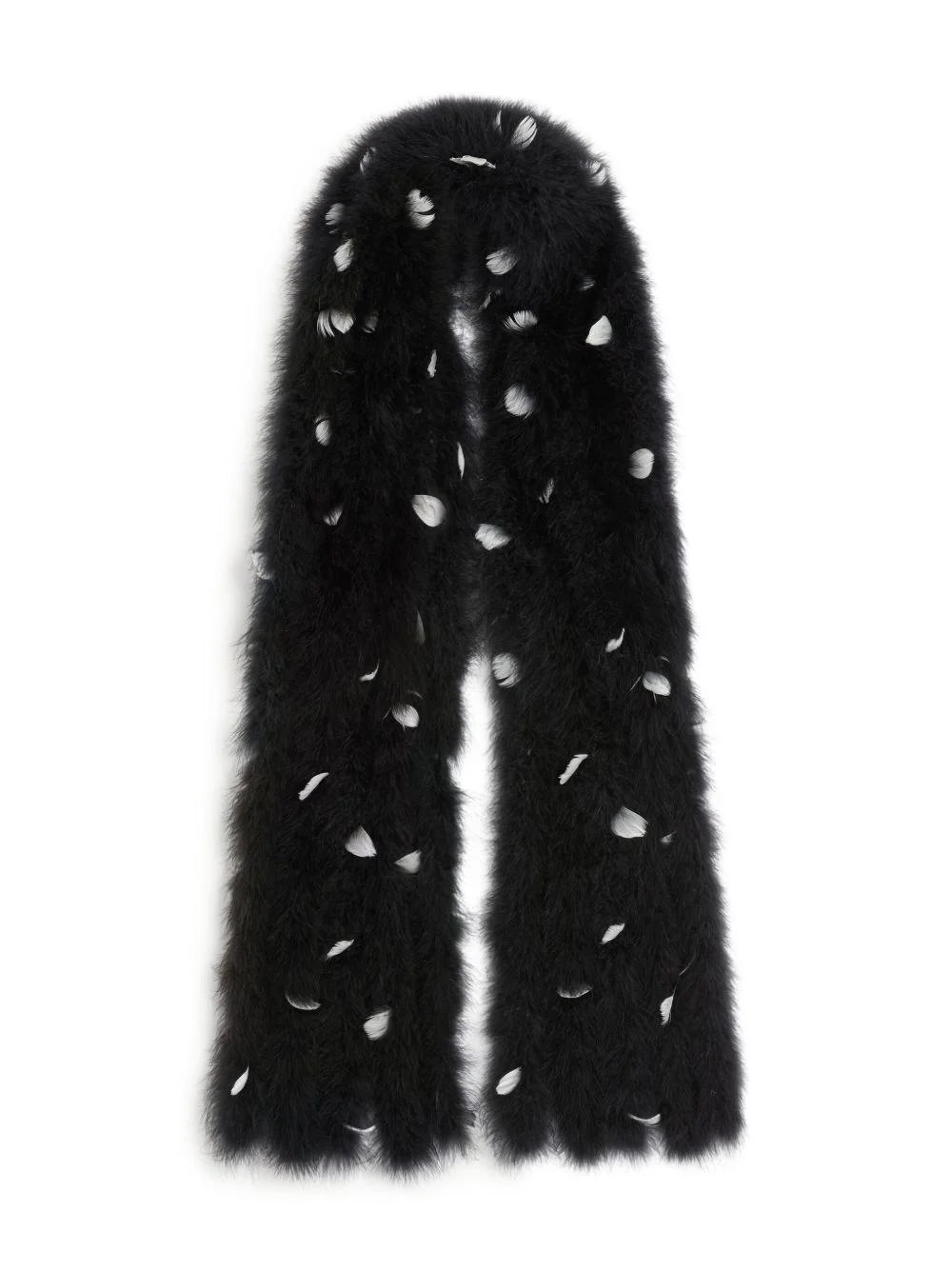 feather-embellished scarf Highlights - Black - Textured finish - Wraparound style Made in Italy Composition Turkey Feather 100%, Goose Feather 100% Washing instructions Read Manufacturer Guidelines