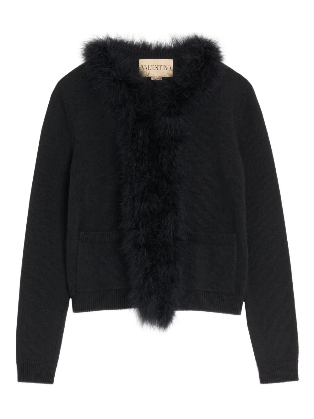 feather wool cardigan Highlights - Black - Front patch pockets - Ribbed cuffs and hem Made in Italy Composition Virgin Wool 100%, Feather 100% Washing instructions Read Manufacturer Guidelines