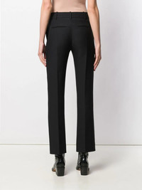 flare leg trousers Seamlessly merging boldness with elegance, Valentino's sleek approach to even the most casual of pieces ensures that you always look stylish. Crafted in Italy and constructed from silk blend, these pleated cropped trousers from Valentino are all about elegance and timeless design. Featuring a waistband with belt loops, a concealed front fastening, side seam pockets, rear welt pockets and a regular length. Made in Italy Composition Outer: Virgin Wool 65%, Silk 35% Lining: Viscose 63%, Silk 37% SIZE & FIT Model measurements Height 5 ft 10 in(1.78 m) Bust/Chest 34.25 in(87 cm) Hips 35.03 in(89 cm) Waist 26.37 in(67 cm) FittingInformation This piece fits true to size. We recommend you get your regular size Designed to be fitted at the waist and through the thigh, loose from the knee Made with a mid-weight non-stretch fabric