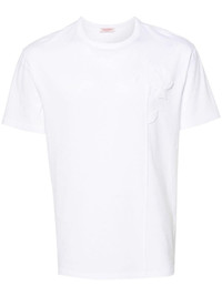 floral-embroidered T-shirt In true Valentino Garavani style, this cotton T-shirt is decorated with a tonal rose applique that sits at the chest, elevating the classic white design. Highlights - White - Cotton - Jersey texture - Floral applique - Crew neck - Short sleeves - Straight hem Made in Italy Composition Cotton 100%, Polyester 100% SIZE & FIT Model measurements Height 6 ft 2 in(1.87 m) Bust/Chest 36.41 in(92.5 cm) Hips 35.43 in(90 cm) Waist 29.52 in(75 cm) FittingInformation Designed for a relaxed fit, this piece allows for comfort and movement when worn Made from a midweight non-stretch fabric, this piece offers minimal elasticity when worn This piece fits true to size – take your usual size