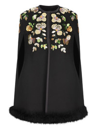 floral-embellished cape Highlights - Black - Floral embellishment - Round neck - Front fastening Made in Italy Composition Virgin Wool 90%, Cashmere 10% Washing instructions Read Manufacturer Guidelines