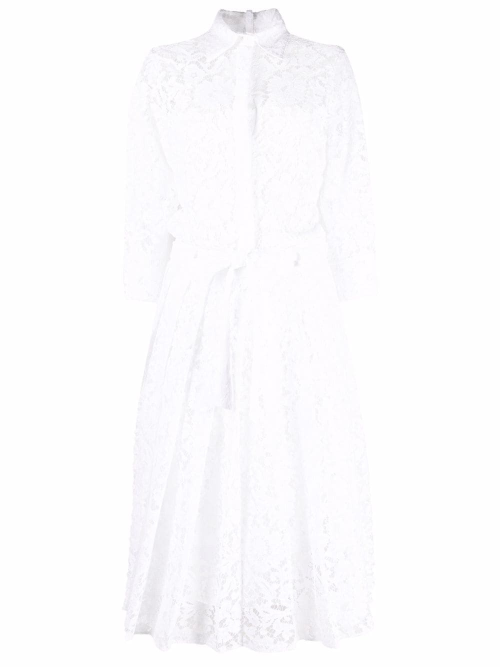 floral-lace pleated shirt-dress
