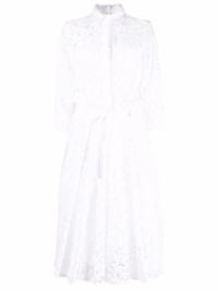 floral-lace pleated shirt-dress Valentino Garavani combines contemporary femininity with traditional Italian elegance, creating pieces such as this pleated shirt-dress. Crafted from a weighty white floral lace and cinched with a tied belt at the waist, this intricate midi presents a fresh take on sophistication. Highlights - Valentino ready to wear - White - Cotton-blend - Floral-lace design - Pleated skirt - Classic collar - Three-quarter length sleeves - Buttoned cuffs - Concealed front button fastening - Belted waist - Mid-length - Internal slip dress Made in Italy Composition Outer: Viscose 43%, Cotton 34%, Polyamide 23% Lining: Viscose 91%, Spandex/Elastane 9% SIZE & FIT Model measurements Height 5 ft 9 in(1.74 m) Bust/Chest 32.28 in(82 cm) Hips 35.82 in(91 cm) Waist 24.01 in(61 cm) Washing instructions Read Manufacturer Guidelines