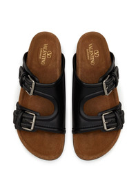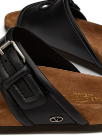 Fussfriend leather sandals Highlights - Black - Calf leather - Vlogo signature - Double-strap design - Round open toe - Double buckle fastening - Slip-on style - Suede lining - Branded insole - Flat rubber sole Made in Italy Composition Lining: Calf Suede 100% Outer: Metal 100%, Calf Leather 100% Sole: Rubber 100%