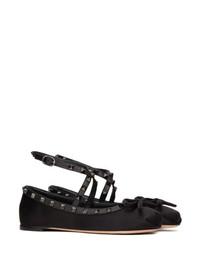 Rockstud satin ballet flats Boasting a refined feel in a black colourway, these Valentino Garavani ballerina shoes, covered in satin, showcase the label’s mastery of minimalist yet bold design and are completed with tonal signature Rockstuds and a bow. Highlights - Black - Calf leather - Satin finish - Tonal signature rockstud embellishment - Bow detailing - Buckle-fastening crossover ankle strap - Branded footbed - Round toe - Flat sole Imported Composition Lining: Calf Leather 100% Outer: Nappa Leather 100%, Fabric 100% Sole: Calf Leather 100%