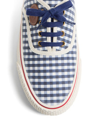 Nojoke checked sneakers Highlights - Navy blue/white - Cotton - Canvas - Leather trim - Front lace-up fastening - Contrasting heel counter - Pull-tab at the heel - Gingham check pattern - Vlogo signature - Round toe - Branded insole - Flat rubber sole Imported Composition Outer: Calf Leather 100%, Polyester 100%, Viscose 100%, Cotton 100% Lining: Goat Skin 100% Sole: Rubber 100%