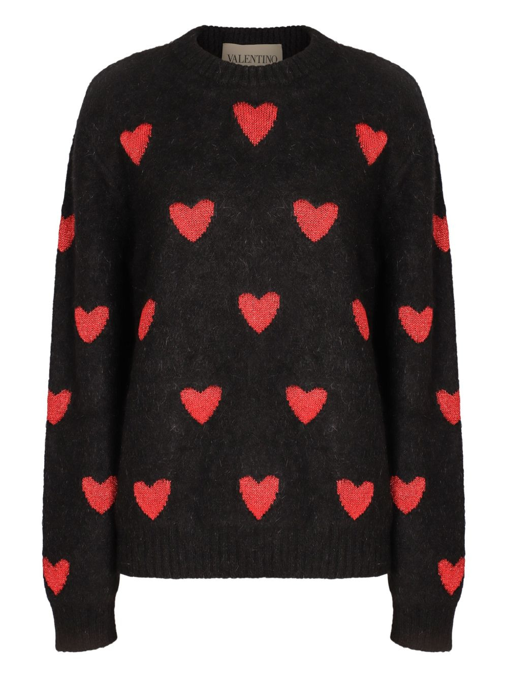 heart-pattern ribbed sweater Highlights - Black - Heart pattern - Ribbed knit edges - Crew neck - Long sleeves - Wool blend Made in Italy Composition Wool 71%, Mohair 16%, Polyamide 7%, Viscose 4%, Metallised Fibres 2% Washing instructions Read Manufacturer Guidelines