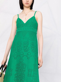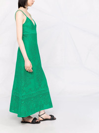 heavy lace long dress Valentino Garavani reflects refined Italian design with this Peonies blanket lace dress in a rich emerald green hue. Whilst the long flared length of the look further speaks to the graceful attitude of the heritage brand. Highlights - Valentino ready to wear - Green - Silk-cotton blend - Plunging v-neck - Spaghetti straps - Sleeveless Made in Italy Composition Outer: Silk 100%, Cotton 80%, Polyamide 20% Lining: Silk 100% SIZE & FIT Model measurements Height 5 ft 10 in(1.79 m) Bust/Chest 30.31 in(77 cm) Hips 33.85 in(86 cm) Waist 25.59 in(65 cm) FittingInformation This piece fits true to size. We recommend you get your regular size Designed for a close fit at the bust, waist and hips Made with a mid-weight non-stretch fabric Washing instructions Dry Clean Only