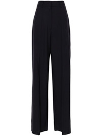 high-waisted tailored wool trousers Highlights - Valentino ready to wear - Navy blue - Wool - Tailored cut - High-waisted - Concealed front button, hook and zip fastening - Belt loops - Two side slit pockets - Two rear welt pockets - Pressed crease - Straight hem Made in Italy Composition Outer: Wool 100% Lining: Silk 100% SIZE & FIT Model measurements Height 5 ft 9 in(1.75 m) Bust/Chest 31.88 in(81 cm) Hips 34.64 in(88 cm) Waist 24.01 in(61 cm) FittingInformation Designed with a wide-leg cut, these trousers allow for a close fit at the waist and offer a loose and roomy fit over the leg The unfinished hems allow for the length to be altered Made from a midweight non-stretch fabric This piece fits true to size – take your usual size
