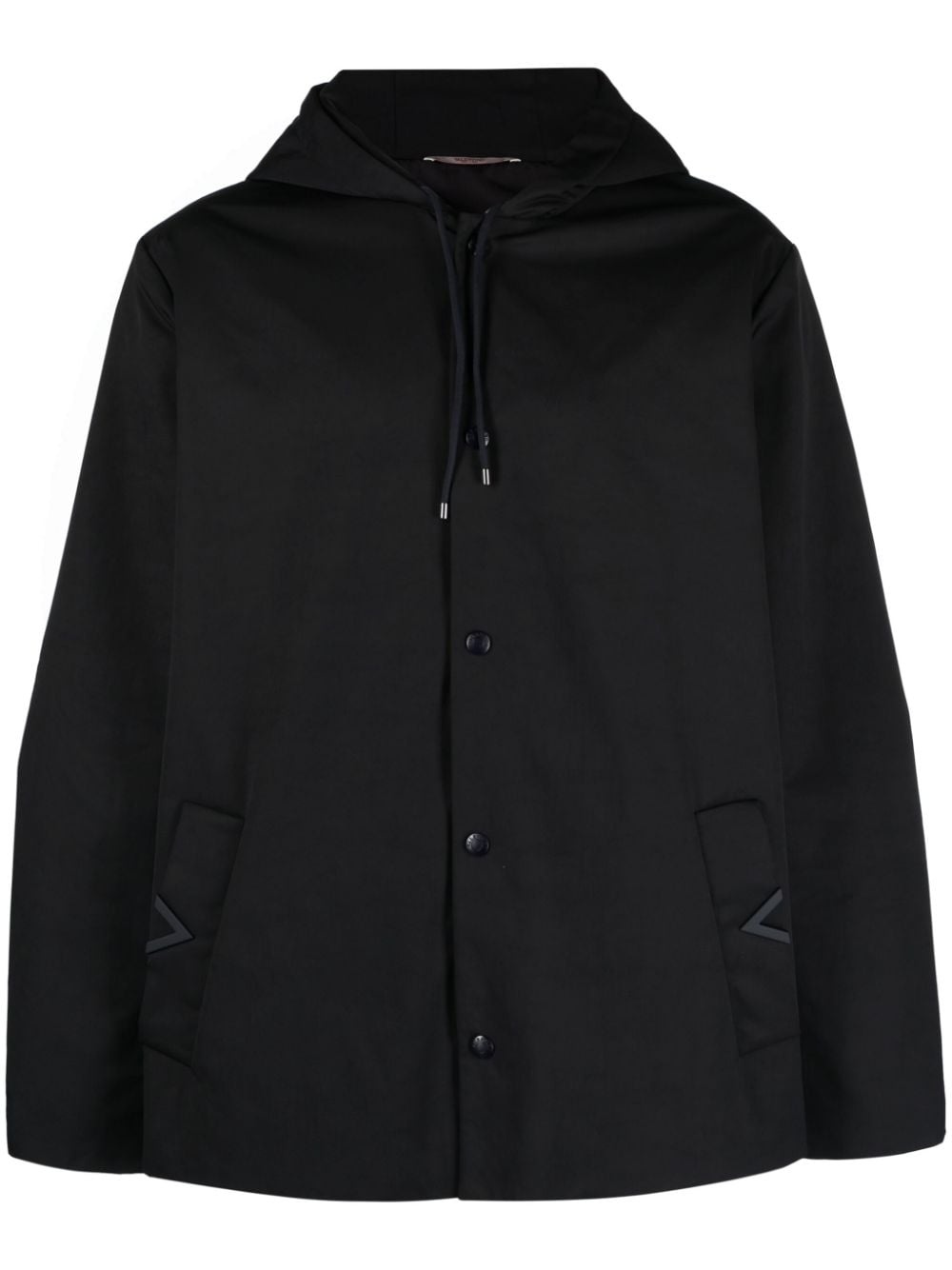 hooded windbreaker jacket This navy Valentino Garavani windbreaker is as classic and practical as it gets, save for the rubberised V inserts at the pockets. It’s crafted from water-repellent shell with a double-layered drawstring hood for added protection. Highlights - Valentino ready to wear - Navy blue - Shell - Water-repellent - Logo-embossed buttons - Tonal logo plaque - Layered drawstring hood - Front press-stud fastening - Long sleeves - Press-stud fastening cuffs - Two front welt pockets - Straight hem - Full lining - The full look includes valentino garavani accessories. Made in Italy Composition Lining: Polyester 100% Outer: Polyester 64%, Elastomultiester 36% SIZE & FIT Model measurements Height 6 ft 3 in(1.9 m) Bust/Chest 36.22 in(92 cm) Hips 37.4 in(95 cm) Waist 28.34 in(72 cm) FittingInformation Designed for a relaxed fit, this piece allows for comfort and movement when worn Made from a midweight non-stretch fabric, this piece offers minimal elasticity when worn This piece fits true to size – take your usual size Washing instructions Dry Clean Only