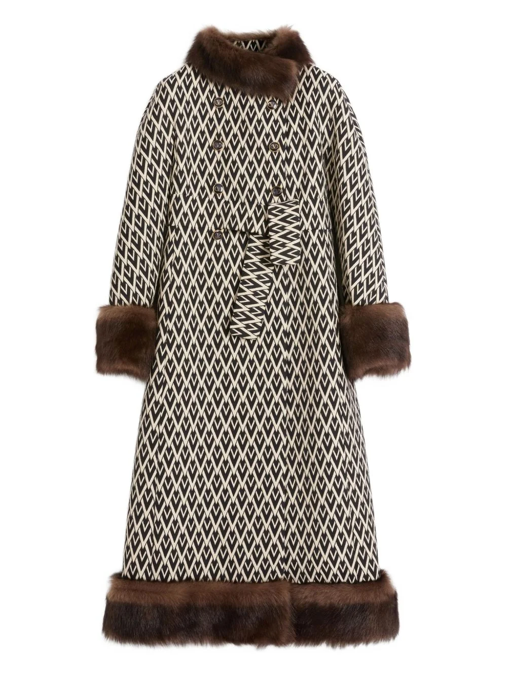 jacquard double-breasted coat Highlights - Brown - Jacquard - Double-breasted - Vlogo buttons - Waist belt Made in Italy Composition Body: Wool 100% Lining: Silk 100% Washing instructions Read Manufacturer Guidelines
