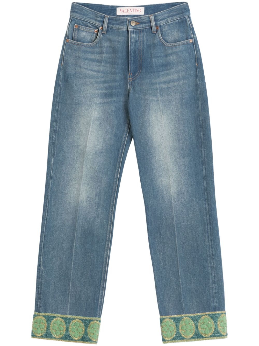 jacquard-trim jeans Highlights Made in Italy Composition Lining: Polyester 65%, Cotton 35% Outer: Cotton 100%, Calf Leather 100%