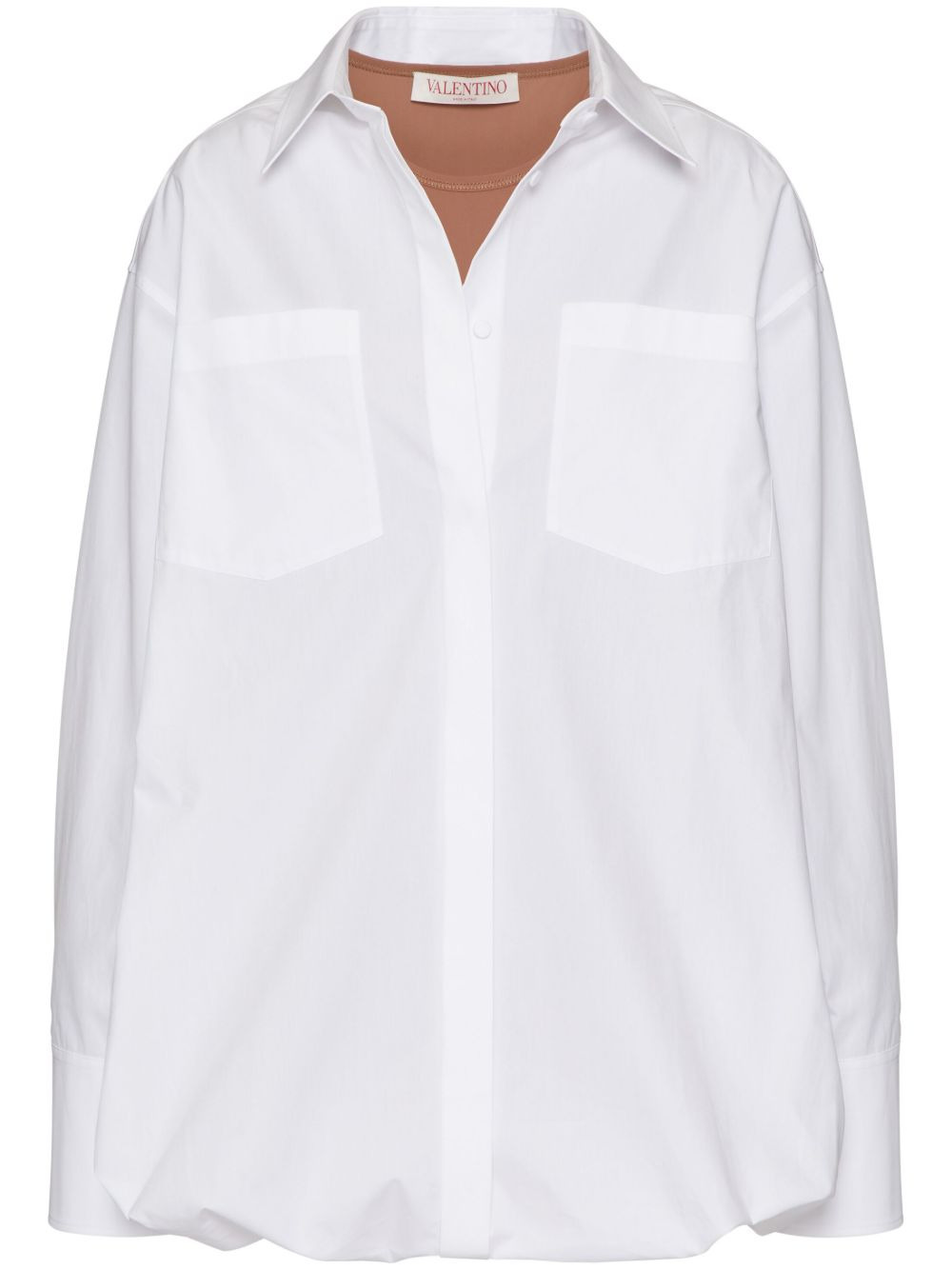 layered cotton-poplin shirt Valentino Garavani's cotton-poplin shirt features a beige jersey underlayer. Cut in a relaxed silhouette, it has two chest patch pockets. Highlights - Valentino ready to wear - White - Cotton - Poplin texture - Jersey knit underlayer - Front button fastening - Buttoned cuffs - Two chest patch pockets - The full look includes valentino garavani accessories. Made in Italy Composition Cotton 100%, Polyamide 68%, Elastane 32% Washing instructions Read Manufacturer Guidelines