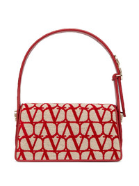 La Petit Deuxieme Toile Iconographe shoulder bag Valentino Garavani's Le Petit Deuxieme shoulder bag references ‘90s styles. Rendered in signature Toile Iconographe, it features an elongated silhouette and curved flap opening, further contributing to the retro feel. Highlights - Beige - Cotton blend - Goatskin - All-over logo embroidery - Adjustable top handle - Adjustable detachable shoulder strap - Front flap closure - Concealed magnetic fastening - Platinum-tone Made in Italy Composition Outer: Goat Skin 100%, Metal 100%, Viscose 37%, Cotton 32%, Polyester 31% Lining: Lamb Skin 100% SIZE & FIT Measurement DEPTH 2.36 in(6 cm) HEIGHT 5.51 in(14 cm) WIDTH 10.23 in(26 cm) Washing instructions Read Manufacturer Guidelines