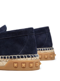 Leisure Flows suede espadrilles Valentino Garavani's renowned VLogo Signature was first seen in 1968 and has become a true icon of the Italian fashion house since then. Decorating these navy-blue espadrilles, the motif is imagined in a tonal hue for a polished finish. Highlights - Navy blue - Suede - Vlogo signature - Almond toe - Slip-on style - Braided raffia sole Made in Italy Composition Lining: Goat Skin 100%, Lamb Skin 100% Sole: Plastic 100% Outer: Metal 100%, Calf Suede 100% SIZE & FIT Measurement HEEL 1.18 in(3 cm) Sole height 0.98 in(2.5 cm) Washing instructions Read Manufacturer Guidelines