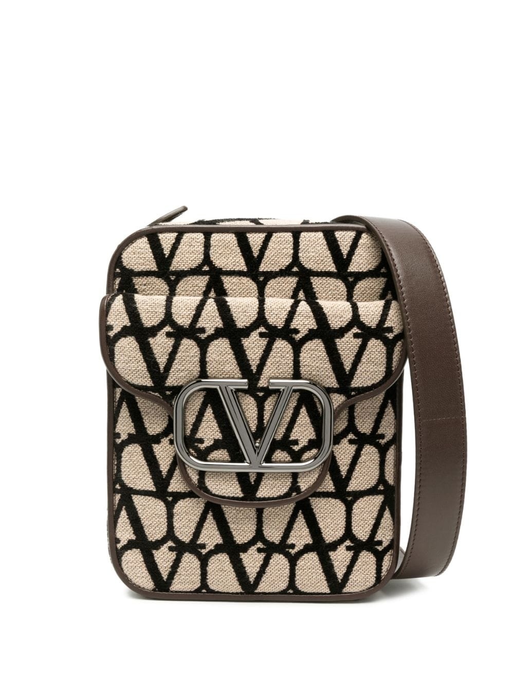 Loco Toile Iconographe crossbody bag Valentino Garavani's Toile Iconographe is an optical pattern that plays on the VLogo Signature. It covers this messenger bag, which is jacquard-woven and trimmed with smooth leather. A hallmark, ruthenium-finish emblem plaque completes the design. Highlights - Black - Beige - Leather trim - Full jacquard - Silver-tone hardware - Maxi vlogo signature - Adjustable shoulder strap - Top zip fastening Made in Italy Composition Outer: Fabric 100%, Calf Leather 100% SIZE & FIT Model measurements Height 5 ft 10 in(1.78 m) Bust/Chest 30.7 in(78 cm) Hips 34.64 in(88 cm) Waist 23.22 in(59 cm) Measurement DEPTH 2.36 in(6 cm) HEIGHT 8.26 in(21 cm) STRAP 24.01 in(61 cm) WIDTH 6.69 in(17 cm)