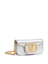 VALENTINO GARAVANI LOCÒ SMALL SHOULDER BAG IN LAMINATED CALFSKIN WITH JEWEL LOGO