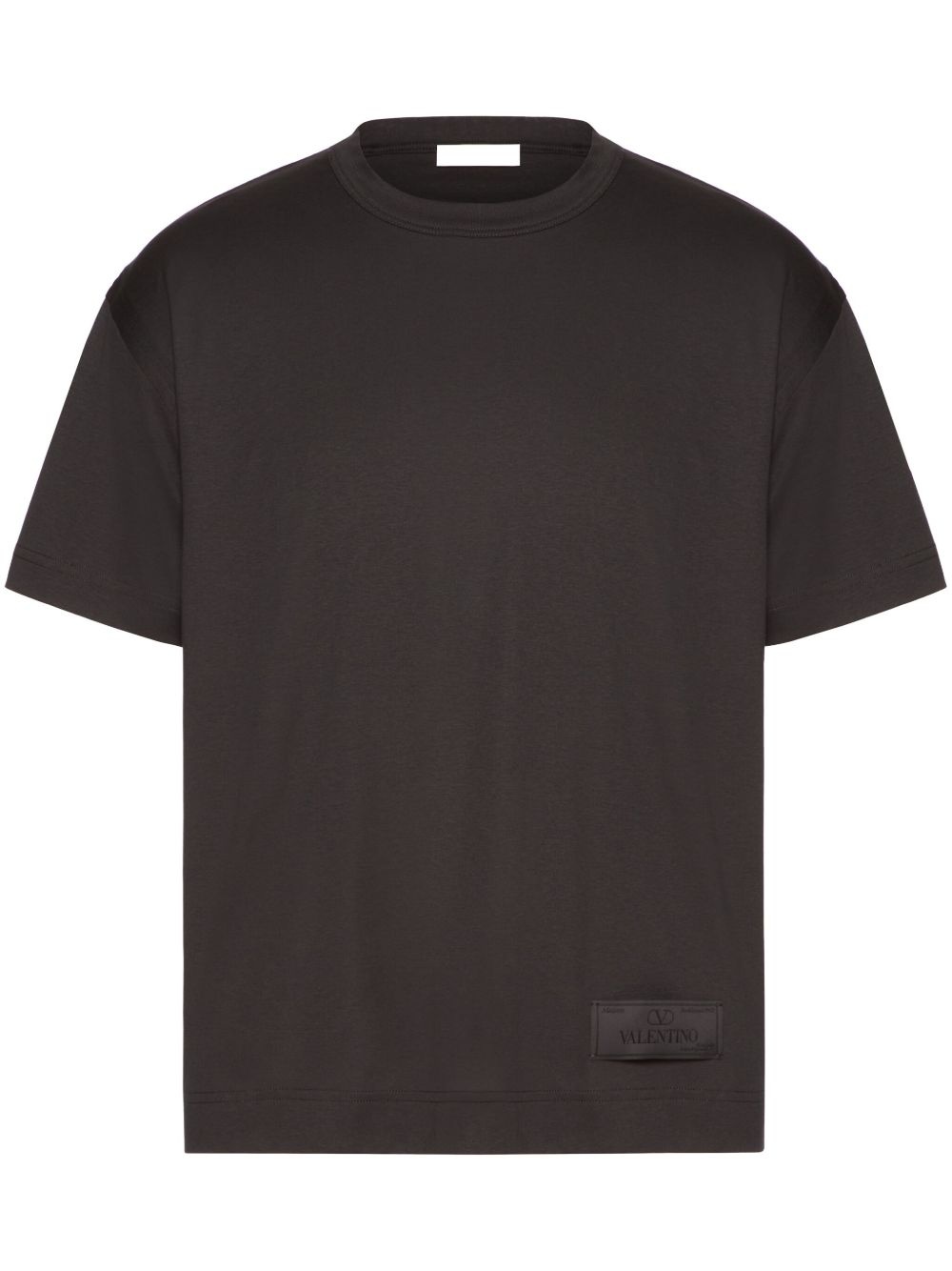 logo-applique cotton T-shirt An homage to Valentino Garavani's VLogo Signature, this anthracite grey T-shirt features the house's iconic branding on a tonal label at the left front hem. Highlights - Valentino ready to wear - Anthracite grey - Cotton - Round neck - Short sleeves - Maison valentino label at front hem - Straight hem - The full look includes valentino garavani accessories. Made in Italy Composition Cotton 100% SIZE & FIT FittingInformation Designed for a relaxed fit, this piece allows for comfort and movement when worn Made from a midweight non-stretch fabric, this piece offers minimal elasticity when worn This piece fits true to size – take your usual size