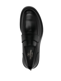 logo-debossed leather loafers Embracing a minimalist aesthetic, these Valentino Garavani loafers are sculpted from black polished leather. The silhouette features a subtly debossed logo on the front, adding a touch of identity. Highlights - Black - Leather - Debossed logo to the front - Round toe - Branded leather insole - Rubber sole Made in Italy Composition Outer: Leather 100% Lining: Leather 100% Sole: Rubber 100% SIZE & FIT Measurement HEEL 1.37 in(3.5 cm)
