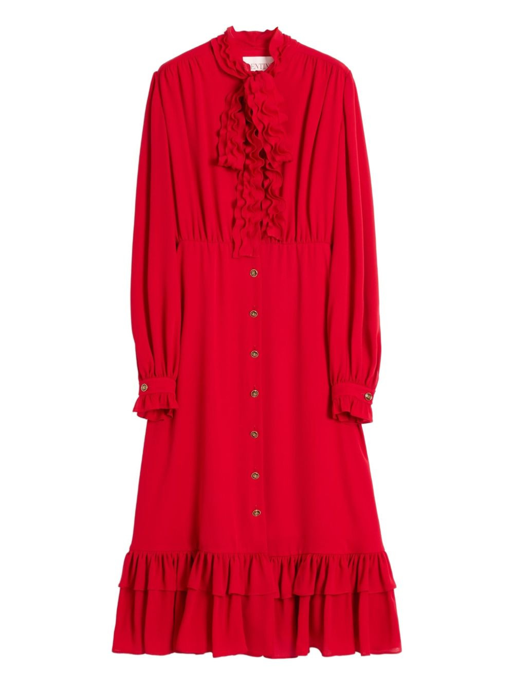 georgette midi dress Highlights - Red - Button fastening - Tie-top fastening - Logo-engraved buttons - Long sleeves - Elasticated cuffs - Flared hem - Ankle-length Made in Italy Composition Lining: Viscose 90%, Elastane 10% Outer: Silk 100%