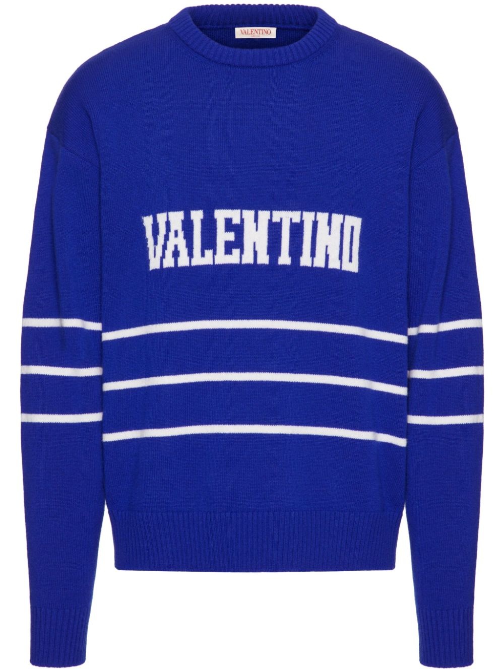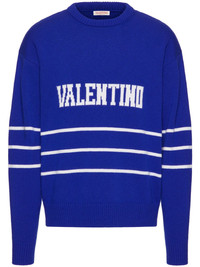 logo-intarsia crew-neck jumper Valentino Garavani is known for its use of logo motifs and charms. This knitted jumper from the latest collection is a bold presentation of the Italian house’s sprawling logo as an intarsia knit across the chest. Highlights - Valentino ready to wear - Blue/white - Virgin wool-cashmere blend - Knitted construction - Ribbed cuffs - Round neck - Long sleeves - Straight hem - The full look includes valentino garavani accessories. Made in Italy Composition Cashmere 100%, Virgin Wool 100% SIZE & FIT Measurement CHEST 45 in(114.3 cm) LENGTH 25.51 in(64.8 cm) WAIST 42 in(106.7 cm) SLEEVE LENGTH 21.49 in(54.6 cm) Shoulder Width 20.98 in(53.3 cm) Washing instructions Read Manufacturer Guidelines