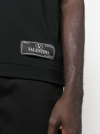 logo-patch cotton T-shirt A classic silhouette upgraded with subtle branding, this cotton T-shirt from Valentino Garavani is stitched with a patch at the hem bearing logo lettering and the VLogo Signature. Highlights - Black - Cotton - Round neck - Short sleeves - Logo patch Made in Italy Composition Cotton 100% SIZE & FIT FittingInformation Designed for a relaxed fit, this piece allows for comfort and movement when worn Made from a midweight non-stretch fabric, this piece offers minimal elasticity when worn This piece fits true to size – take your usual size Washing instructions Read Manufacturer Guidelines