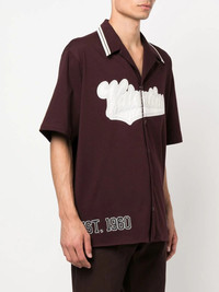 logo-patch short-sleeve shirt Valentino Garavani presents a retro-inspired style with this short-sleeve design for AW22. Imagined in a bordeaux red hue, this shirt is characterised by bold branding, including the label's logo patch to the front and an embroidered motif to the rear. In addition, this branding is complemented by stripe detailing, evoking a preppy aesthetic. Highlights - Valentino ready to wear - Bordeaux red - Cotton - Logo patch to the front - Embroidered motif - Stripe detailing - Logo-debossed buttons - Spread collar - Front button fastening - Short sleeves Made in Italy Composition Cotton 100%, Polyamide 100%, Polyester 100% SIZE & FIT Model measurements Height 6 ft 1 in(1.85 m) Bust/Chest 35.82 in(91 cm) Hips 37.79 in(96 cm) Waist 29.13 in(74 cm) FittingInformation This piece fits true to size. We recommend you get your regular size Cut for a loose fit Made with a mid-weight fabric Washing instructions Read Manufacturer Guidelines