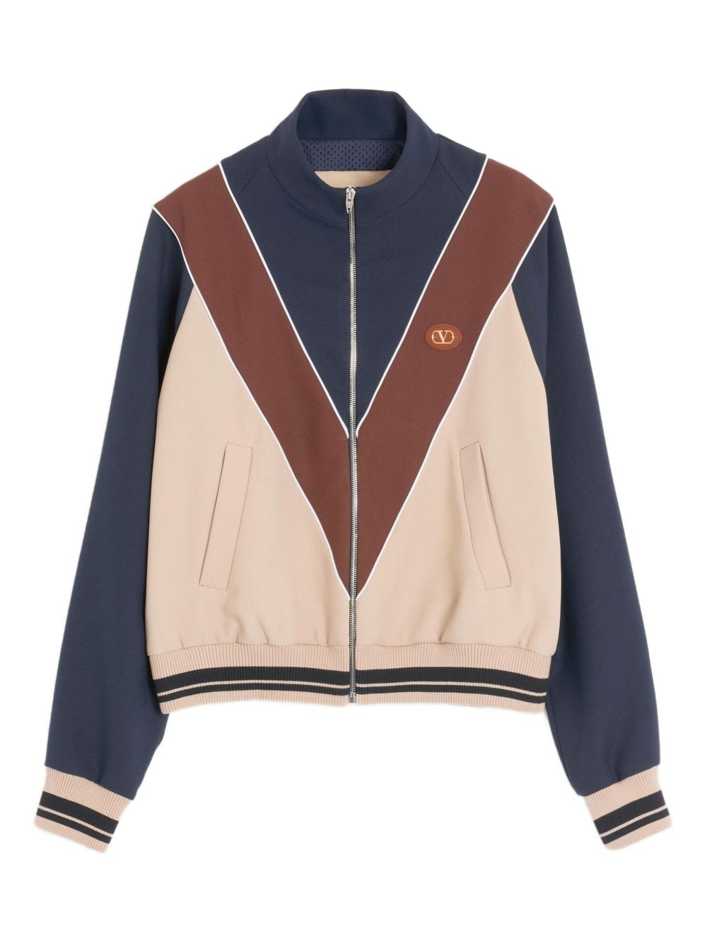 VLogo-patch sweatshirt Highlights - Beige - Vlogo patch - Front zip fastening - Long sleeves - Elasticated ribbed trim Made in Italy Composition Polyester 100%