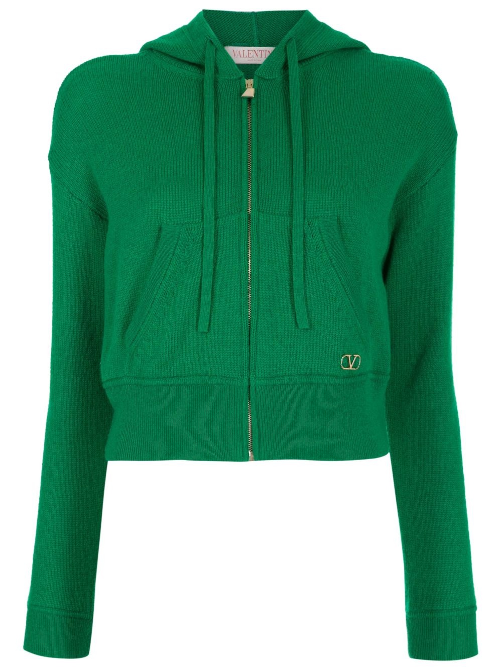 logo-plaque cashmere hoodie Highlights - Emerald green - Cashmere - Gold-tone hardware - Signature v logo plaque - Drawstring hood - Front zip fastening - Long sleeves - Ribbed cuffs and hem - Front pouch pocket Made in Italy Composition Cashmere 100% SIZE & FIT Model measurements Height 5 ft 9 in(1.74 m) Bust/Chest 32.28 in(82 cm) Hips 35.03 in(89 cm) Waist 24.8 in(63 cm) FittingInformation Designed for a relaxed fit, this piece allows for comfort and movement when worn Made from a midweight non-stretch fabric, this piece offers minimal elasticity when worn This piece fits true to size – take your usual size