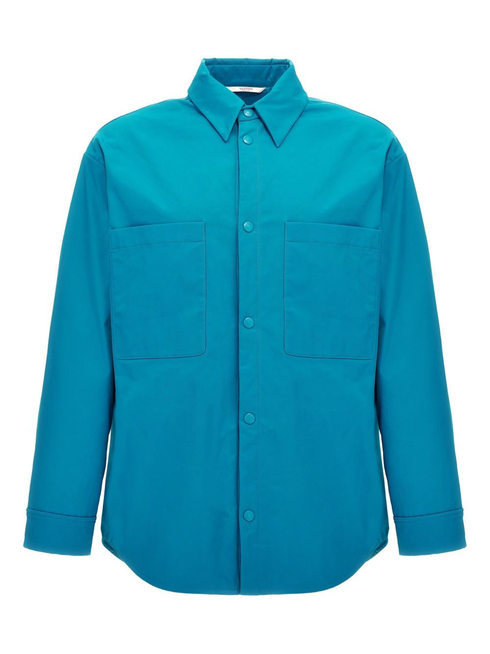 logo-plaque shirt jacket Highlights - Aqua blue - Logo plaque - Classic collar - Front press-stud fastening - Two chest patch pockets - Long sleeves - Press-stud fastening cuffs - Straight hem Made in Italy Composition Outer: Polyester 100% Lining: Cupro 100%