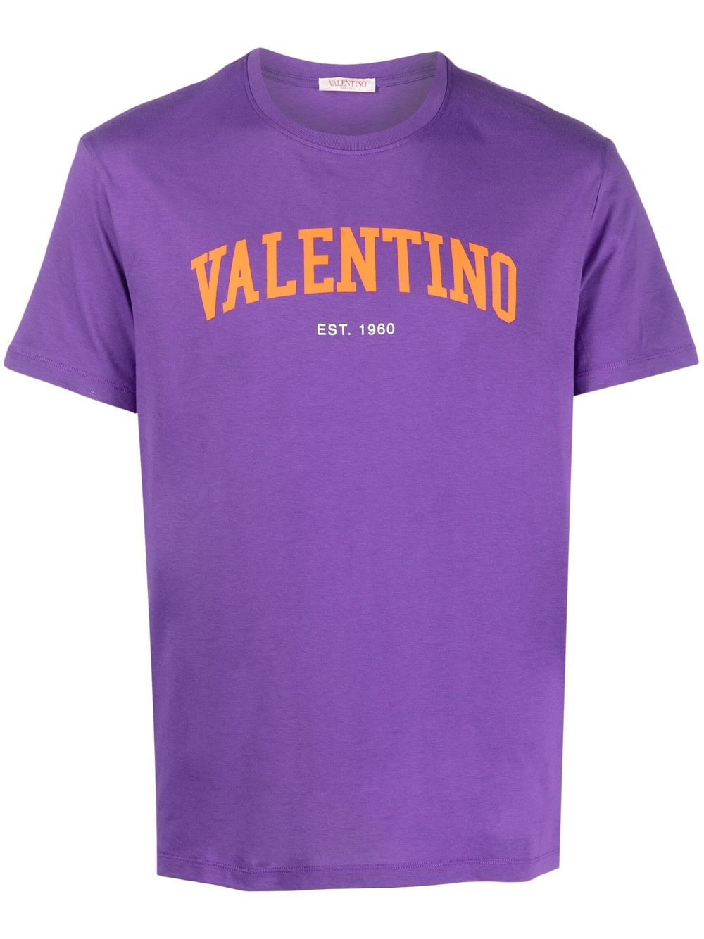 logo-print cotton T-shirt Keeping in with the label’s penchant for contemporary design, this Valentino Garavani T-shirt boasts a minimalist profile and is complete with contrasting logo branding to the front for a distinctive look. Highlights - Valentino ready to wear - Purple/orange - Cotton - Logo print at the chest - Round neck - Short sleeves Made in Italy Composition Cotton 100% SIZE & FIT Model measurements Height 6 ft 2 in(1.88 m) Bust/Chest 36.22 in(92 cm) Hips 36.61 in(93 cm) Waist 29.52 in(75 cm) Measurement CHEST 39.37 in(100 cm) SLEEVE LENGTH 7.48 in(19 cm) LENGTH 27.16 in(69 cm) FittingInformation Designed for a regular fit allowing for a comfortably loose fit throughout the body Made from a midweight non-stretch fabric, this piece offers minimal elasticity when worn This piece fits true to size – take your usual size