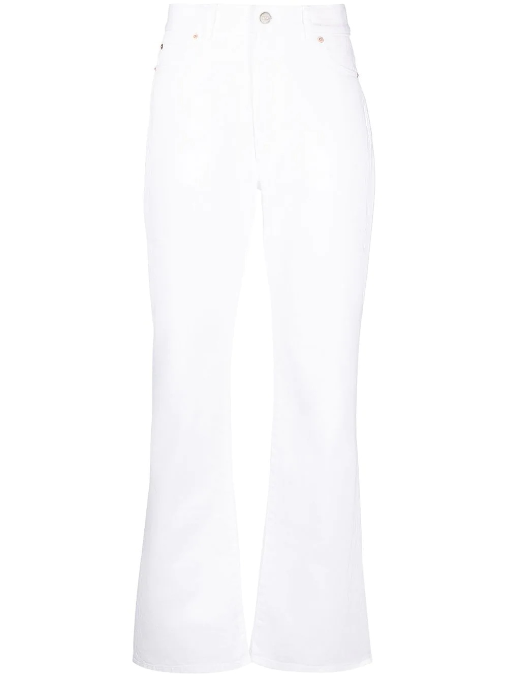 logo-print straight-leg jeans Crafted to a classic straight-leg silhouette, these Valentino Garavani jeans are given a twist with a graphic print to the rear. An Archive 1985 design, this detail adds an unexpected touch to the otherwise minimalist pair. Highlights - Valentino ready to wear - White/grey - Cotton - Logo print to the rear - Belt loops - Front button and zip fastening - Classic five pockets - Straight leg Made in Italy Composition Outer: Cotton 100% Lining: Polyester 65%, Cotton 35% Washing instructions Hand Wash