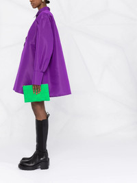 long-sleeve button-up shirt Valentino Garavani adds a minimalist edge to the brand's signature opulence in this long-sleeve shirt dress from the SS22 collection. Constructed from silk material with a bright purple tonal colourway, the garment has a contemporary yet timeless feel. Highlights - Valentino ready to wear - Purple - Silk - Tonal design - Classic collar - Front button placket - Long sleeves Made in Italy Composition Outer: Silk 100% Lining: Viscose 63%, Silk 37% SIZE & FIT Model measurements Height 5 ft 10 in(1.77 m) Bust/Chest 29.92 in(76 cm) Hips 34.25 in(87 cm) Waist 23.62 in(60 cm) Measurement HIPS 57.48 in(146 cm) LENGTH 33.07 in(84 cm) WAIST 53.54 in(136 cm) FittingInformation This piece fits true to size. We recommend you get your regular size Cut for a loose fit Made with a mid-weight non-stretch fabric Washing instructions Read Manufacturer Guidelines