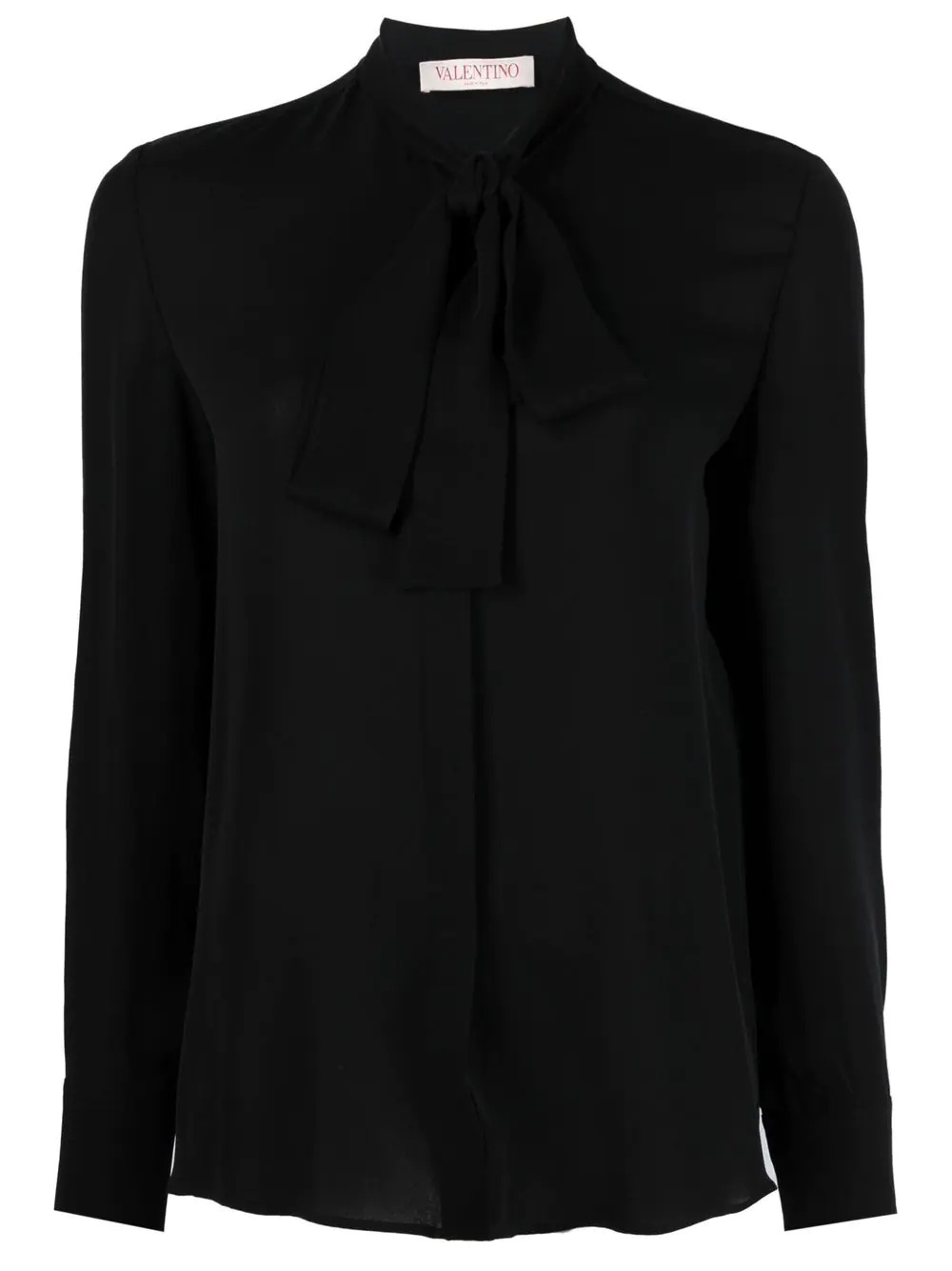 silk georgette blouse Valentino Garavani's VLogo Signature was first used in 1968 and is an instantly recognisable motif of the brand. Featured on the logo patch at the rear of the design, the brand's heritage is referenced in a contemporary way. Highlights - Valentino ready to wear - Black - Silk - Long sleeves - Front tie fastening Made in Italy Composition Silk 100% SIZE & FIT Model measurements Height 5 ft 10 in(1.77 m) Bust/Chest 32.28 in(82 cm) Hips 34.64 in(88 cm) Waist 24.4 in(62 cm) Measurement LENGTH 27.95 in(71 cm) HIPS 47.24 in(120 cm) FittingInformation This piece fits true to size. We recommend you get your regular size Cut for a slim fit Made with a mid-weight non-stretch fabric Washing instructions Read Manufacturer Guidelines