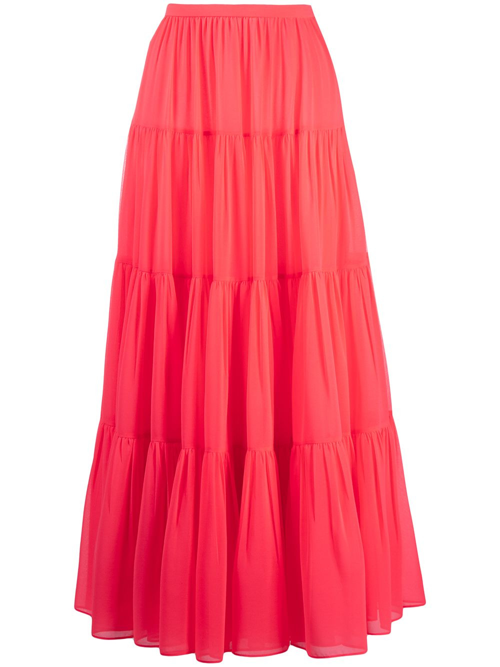 long tiered skirt Life isn't always black and white, so why should your wardrobe be? Crafted with a tiered design, this neon pink skirt from Valentino will brighten up your wardrobe and your days. Don't let it get away. Featuring a high waist, a concealed side zip fastening, pleated details and a long length. Made in Italy Composition Outer: Polyester 100% Lining: Polyester 100% SIZE & FIT Model measurements Height 5 ft 11 in(1.8 m) Bust/Chest 31.49 in(80 cm) Hips 35.82 in(91 cm) Waist 24.8 in(63 cm) FittingInformation This piece fits true to size. We recommend you get your regular size Designed to be fitted at the waist, loose over the leg Made with a mid-weight non-stretch fabric Washing instructions Dry Clean Only
