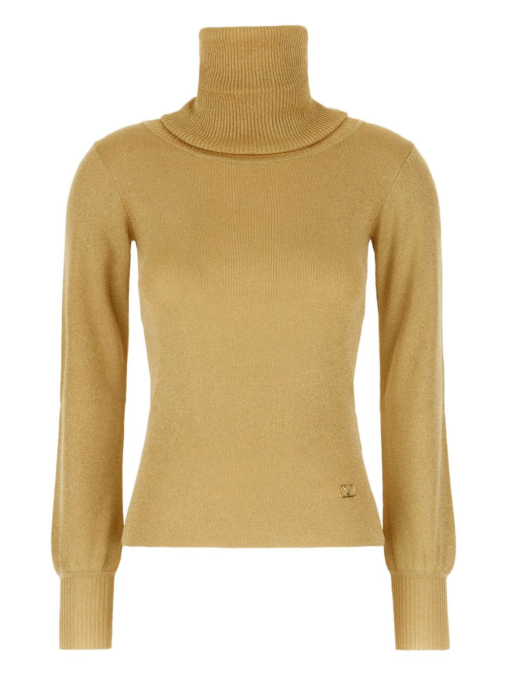 roll-neck sweater Highlights - Beige - Lurex knit - Metallic finish - Roll neck - Long sleeves - Ribbed cuffs - Vlogo signature Made in Italy Composition Viscose 81%, Metallic Fibre 19%