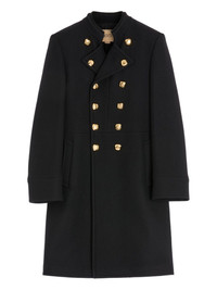 mandarin-collar double-breasted coat Highlights - Black - Mandarin collar - Gold-tone buttons - Double-breasted fastening - Wool blend Made in Italy Composition Outer: Wool 73%, Polyamide 27% Lining: Cupro 100% Washing instructions Read Manufacturer Guidelines