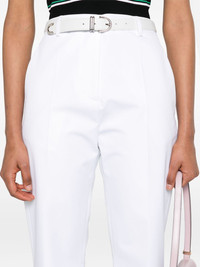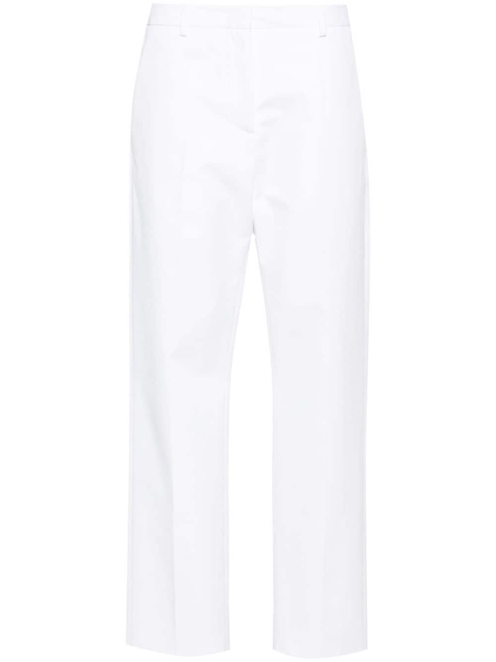 Compact poplin trousers Highlights - Valentino ready to wear - White - Cotton - Tailored cut - Mid-rise - Concealed front button, hook and zip fastening - Belt loops - Two diagonal pockets to the sides - Two rear welt pockets - Pressed crease - Straight hem Made in Italy Composition Outer: Cotton 100% Lining: Cotton 100% SIZE & FIT Model measurements Height 5 ft 10 in(1.77 m) Bust/Chest 33.07 in(84 cm) Hips 37 in(94 cm) Waist 24.8 in(63 cm) FittingInformation Designed for a straight-leg fit, these trousers allow for a close fit at the waist and an unrestricted, comfortable fit over the leg Made from a midweight non-stretch fabric This piece fits true to size – take your usual size