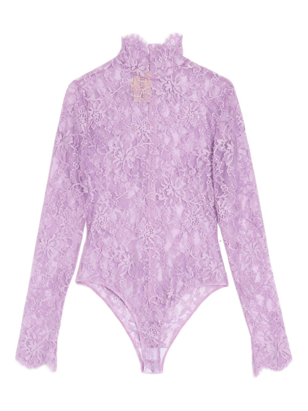 mock-neck bodysuit Highlights - Purple - Floral lace - Lace insert - High neck - Long sleeves - Rear zip fastening - The full look includes valentino garavani accessories. - Just a reminder that this piece must be tried on over your own garments. Made in Italy Composition Polyamide 90%, Spandex/Elastane 10% Washing instructions Read Manufacturer Guidelines