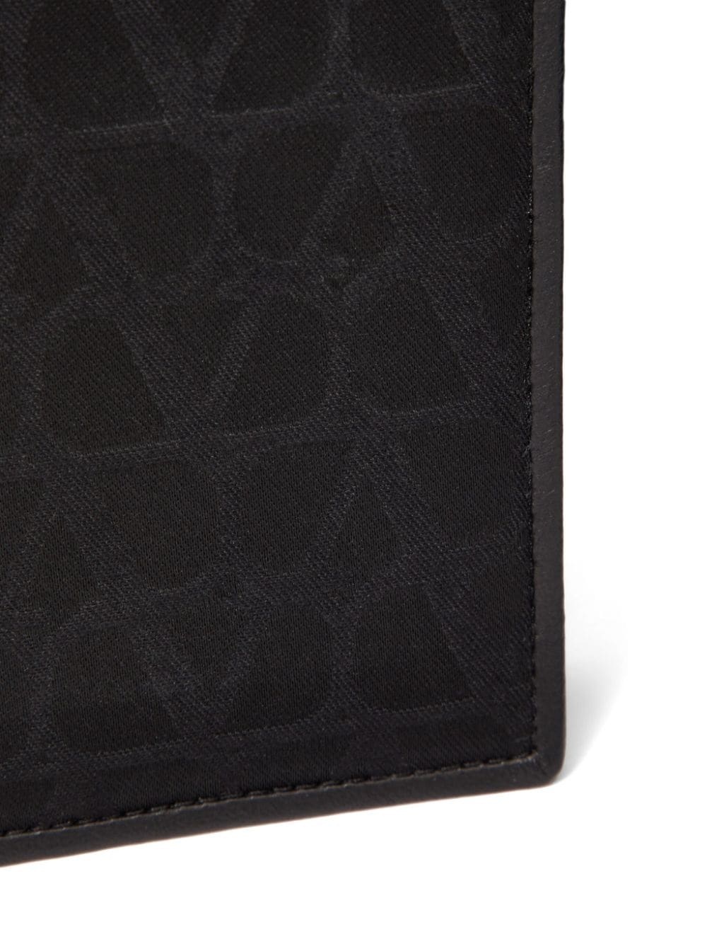 monogram-pattern bi-fold wallet Highlights - Black - Monogram pattern - Leather trim - Debossed internal logo - Bi-fold design - Rectangle shape - Internal card slots - Internal note compartments Composition Outer: Lamb Skin 100%, Polyester 68%, Cotton 32% Lining: Viscose 100%, Lamb Skin 100%