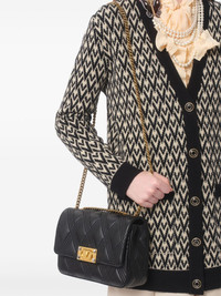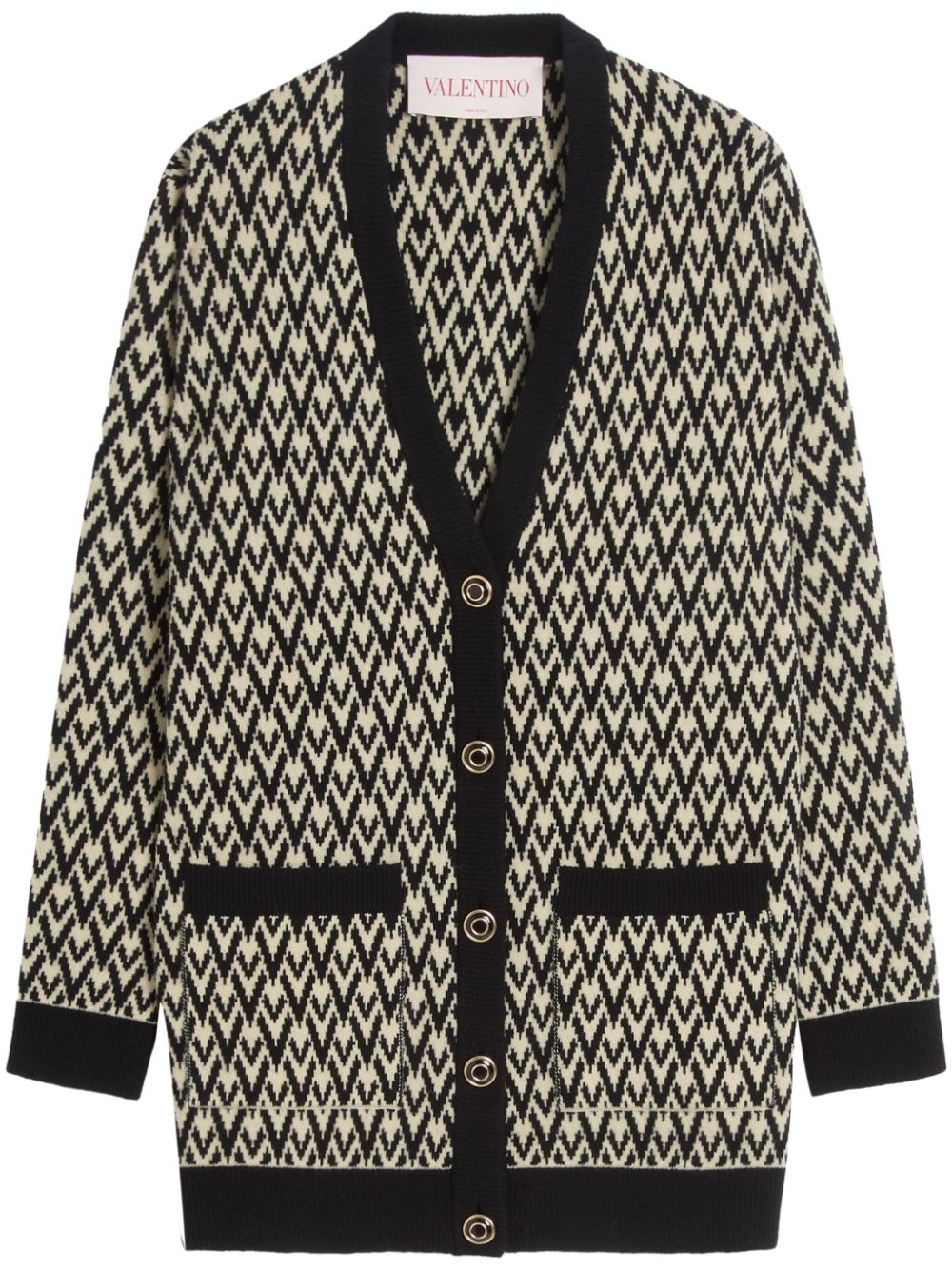 Toute La V cardigan Highlights - Black - Virgin wool - Geometric pattern - Front button fastening - V-neck - Two side patch pockets - Long sleeves - Ribbed cuffs and hem - Contrasting trim Made in Italy Composition Outer: Virgin Wool 100%