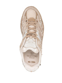 MS-2960 panelled sneakers Rockstud detailing has been a staple of Valentino Garavani's collections since its debut in 2010 – the now iconic pyramidal studs epitomise the Italian fashion house’s edgy aesthetic. These MS-2960 sneakers are emblematic of that approach, as the sporty panelled upper is adorned with gold-tone iterations of the iconic embellishment. Highlights - Beige - Canvas/calf leather - Signature rockstud embellishment - Logo patch at the tongue - Front lace-up fastening - Round toe - Branded insole - Chunky rubber sole Made in Italy Composition Lining: Fabric 100%, Calf Leather 100% Outer: Fabric 100%, Calf Leather 100% Sole: Rubber 100% SIZE & FIT Measurement HEEL 1.57 in(4 cm) Sole height 1.18 in(3 cm)