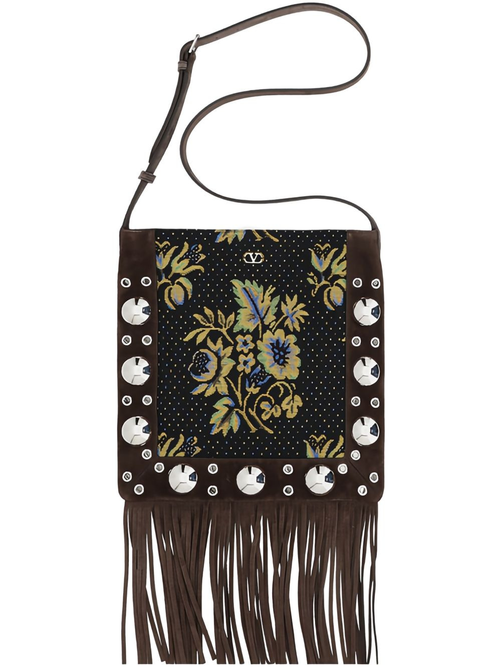 VALENTINO GARAVANI NELLCÔTE SHOULDER BAG IN JACQUARD FABRIC WITH FRINGES