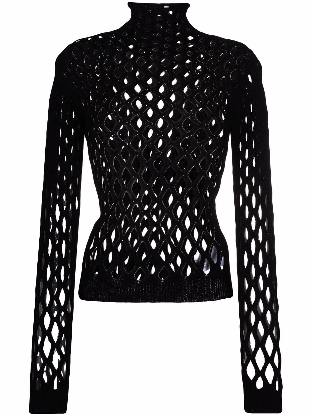 net knitted top Valentino Garavani's knitted top has a bold net construction which showcases whatever is or isn't beinɡ worn underneath. Featurinɡ a high neckline, this look covers the body with long sleeves with ribbed cuffs. Highlights - Valentino ready to wear - Black - High neck - Ribbed-knit edge - Long sleeves - Ribbed cuffs Made in Italy Composition Viscose 75%, Polyester 25% SIZE & FIT Model measurements Height 5 ft 11 in(1.8 m) Bust/Chest 31.49 in(80 cm) Hips 35.82 in(91 cm) Waist 24.8 in(63 cm) FittingInformation This piece fits true to size. We recommend you get your regular size Cut for a close fit Made with a mid-weight fabric Measurement BUST 22.83 in(58 cm) Washing instructions Read Manufacturer Guidelines