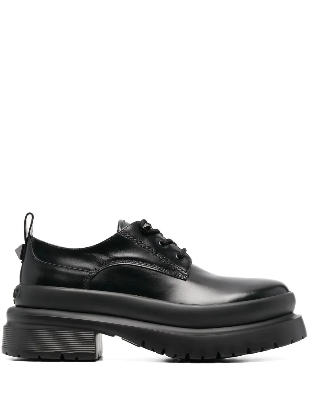 Ono leather Derby shoes Ono leather Derby shoes from VALENTINO GARAVANI featuring black, calf leather, front lace-up fastening, round toe and chunky sole. Made in Italy Composition Outer: Calf Leather 100%, Metal 100% Sole: Plastic 100% Lining: Lambskin 100%, Goat Skin 100% SIZE & FIT Measurement HEEL 1.96 in(5 cm) Sole height 1.18 in(3 cm) Washing instructions Read Manufacturer Guidelines