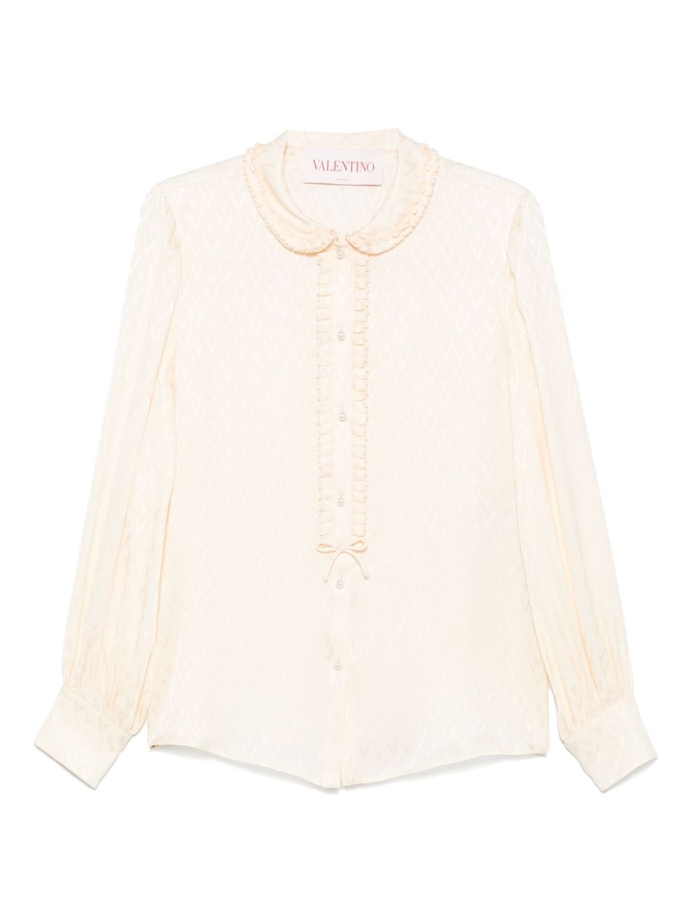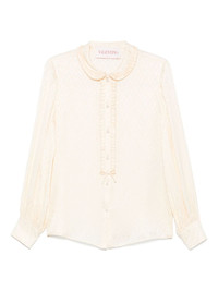 Optical-jacquard shirt Highlights - Light beige - Front button fastening - Buttoned-cuff sleeves - Ruffled detailing - Bow detailing Made in Italy Composition Silk 100%