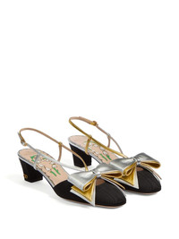 45mm Bowow slingback pumps Highlights - Black/multicolour - Calf leather - Low heel - Buckle-fastening slingback strap - Signature vlogo plaque - Crossover strap at the toe - Oversize bow detail - Round toe - Branded insole Made in Italy Composition Outer: Calf Leather 100%, Sheepskin 100%, Viscose 100%, Metal 100% Sole: Calf Leather 100% Lining: Goat Skin 100% SIZE & FIT Measurement HEEL 1.77 in(4.5 cm)