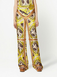 paisley-print logo branded silk trousers