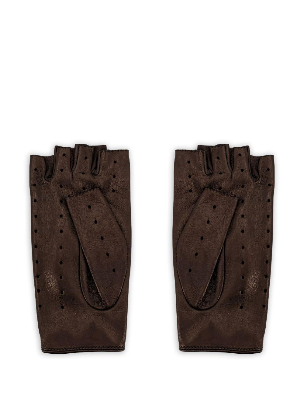 perforated leather gloves Highlights - Brown - Leather - Perforated detailing - Fingerless design - Button fastening - Wrist strap Made in Italy Composition Lining: Leather 100%